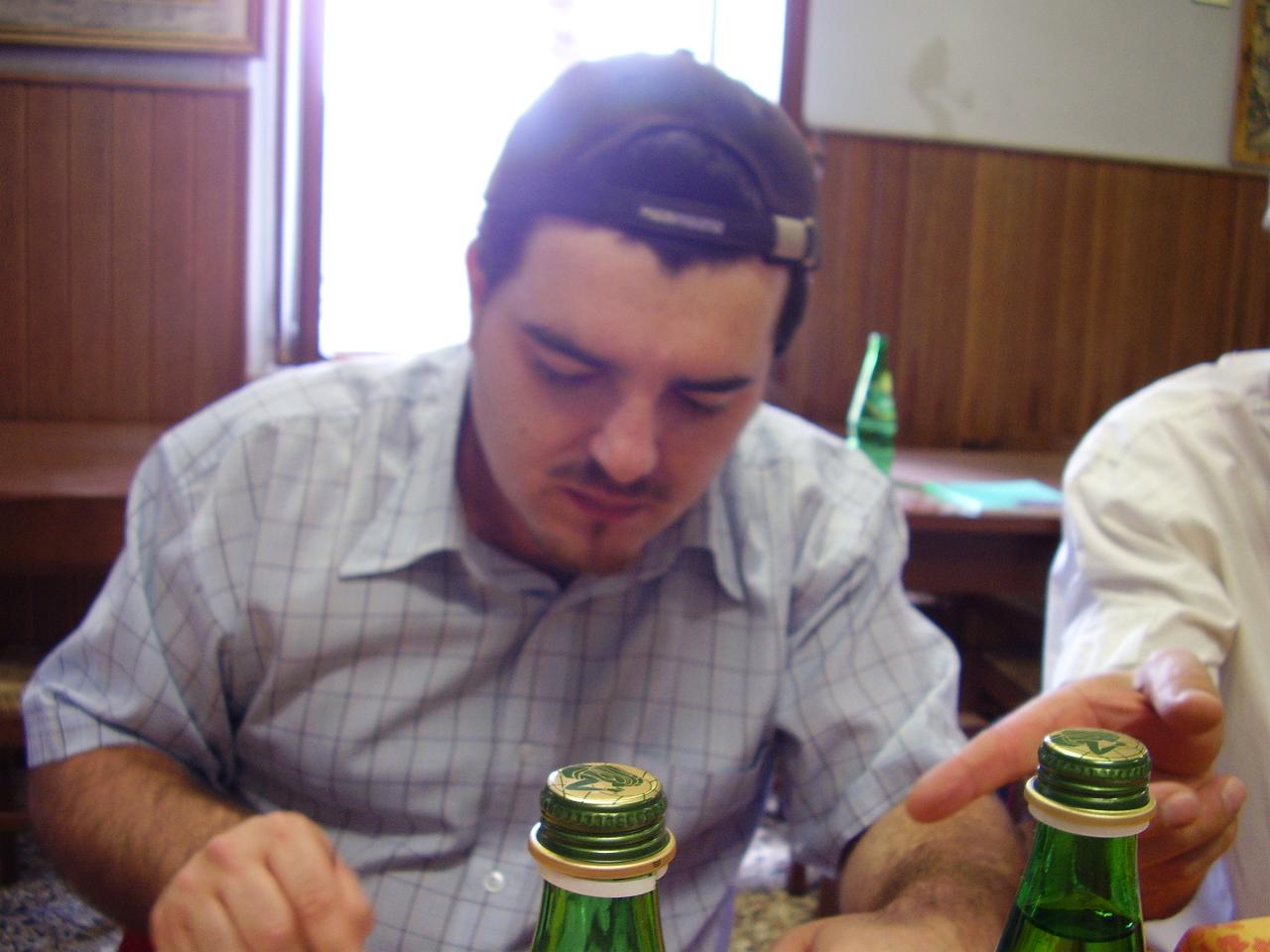 In questa foto daniele al telefono per dare le coordinate del ristorante a un lamonetiano disperso. Numes pensieroso, non sapeva se ordinare le seppie o qualcosa d'altro.