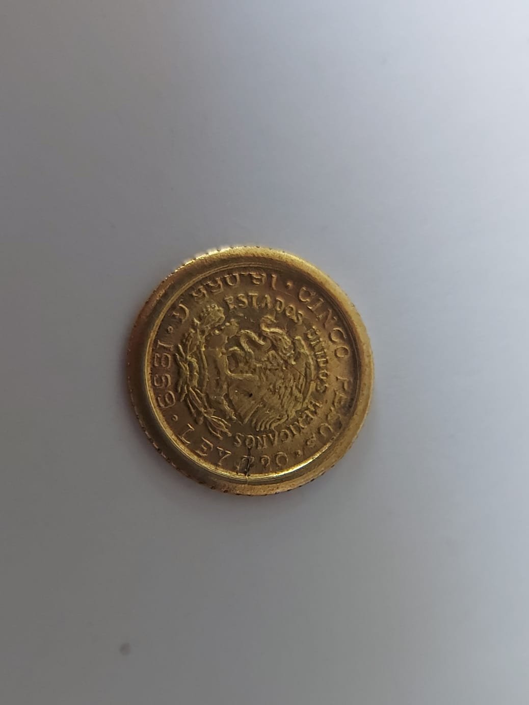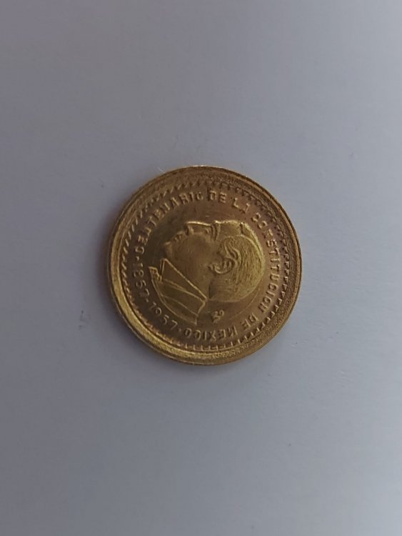 E' una riproduzione di una moneta messicana; se è oro, come affermi, si tratta di bassa lega,  peso irrisorio. Roba per turisti, valore come  metallo (il suo peso moltiplicato  per l'oro contenuto).