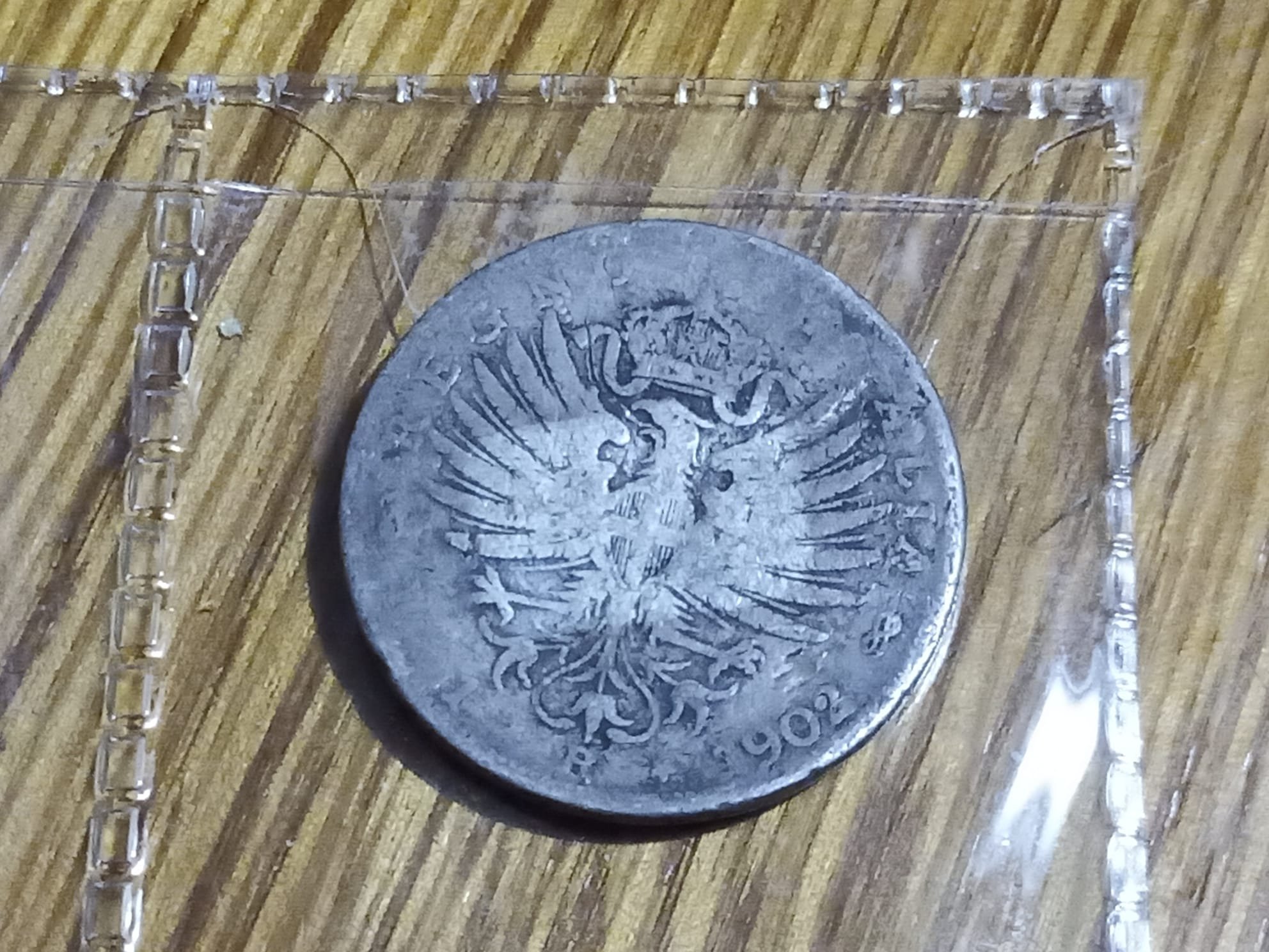 1 lira 1902 argento (con uno strano parallelepipedo al centro la cui origine mi è ignota). Data la scurezza della moneta sospetto il falso storico (ma lascio ai pro valutare).