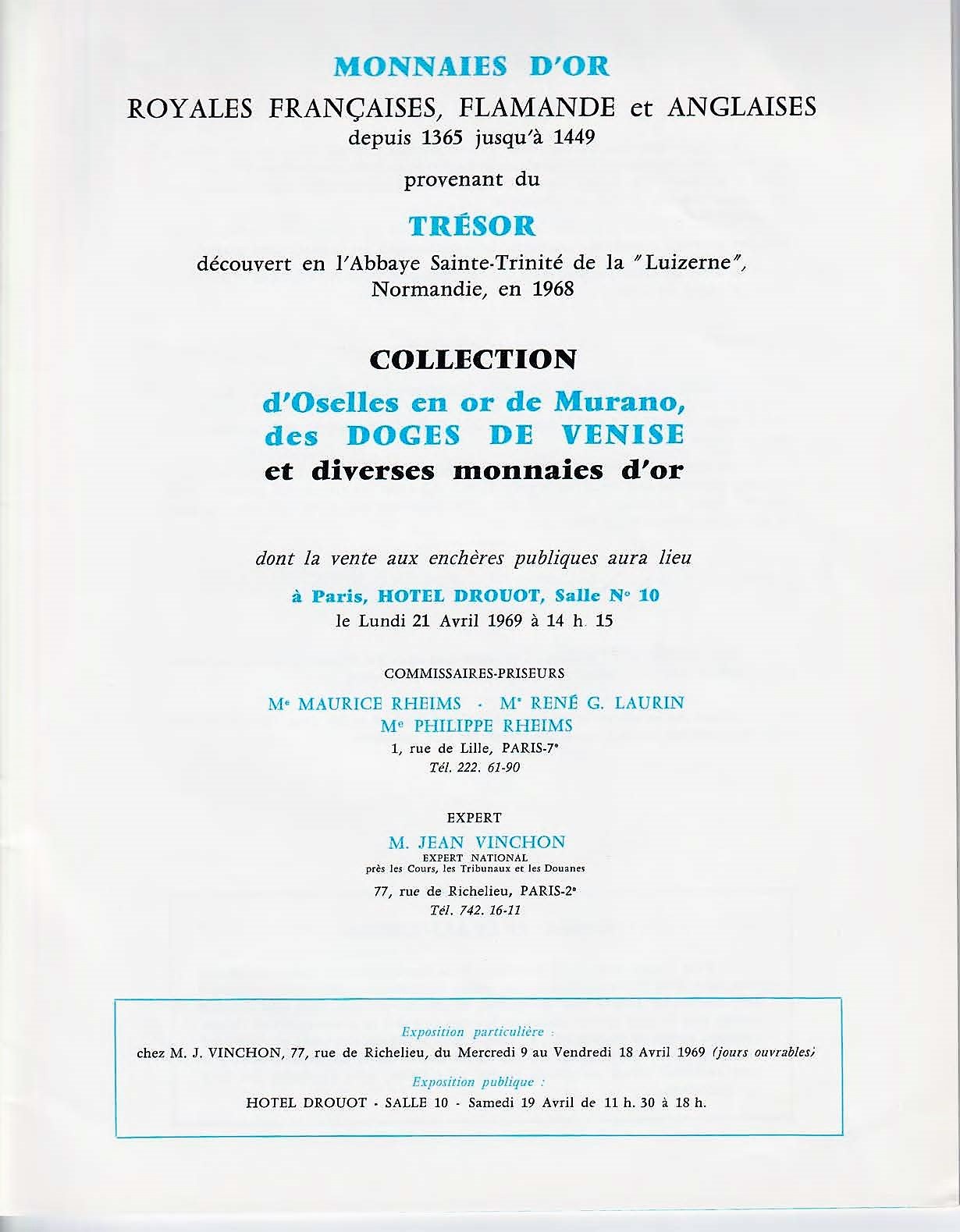[Catalogue de vente. Trésor de l'Abbaye Sainte-Trinité de la Luzerne. Monnaies d'or] | Gallica (bnf.fr)