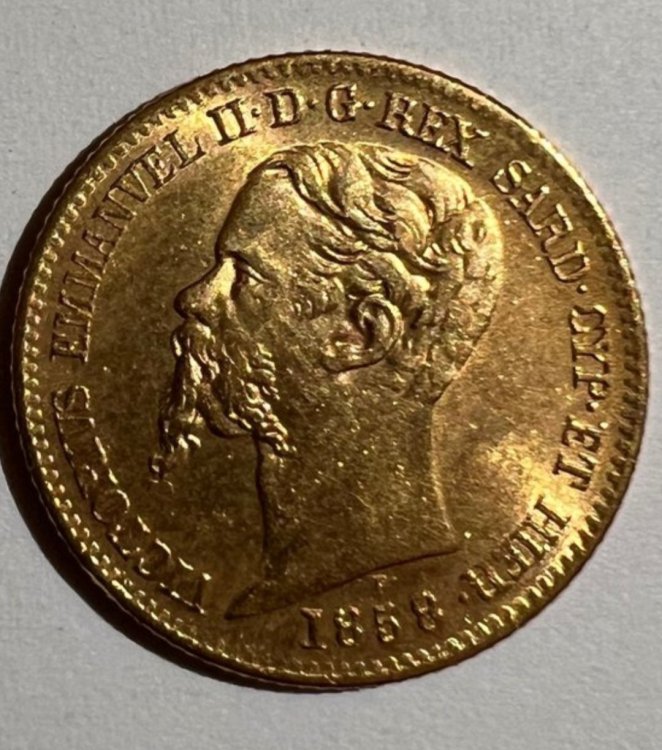 Se un perito l'ha giudicata falsa, penso non ci sia molto da disquisire, lui l'ha vista di persona l'ha toccata, noi possiamo osservarla solo in foto. Un aspetto che non mi piace è il bordo sia al D che al R, poi bisognerebbe capire quale è stato l'intento di falsificare una moneta comune, comunque bisogna rammentare che negli anni 50/60  del secolo scorso, furono falsificati marenghi e sterline anche con buone leghe.