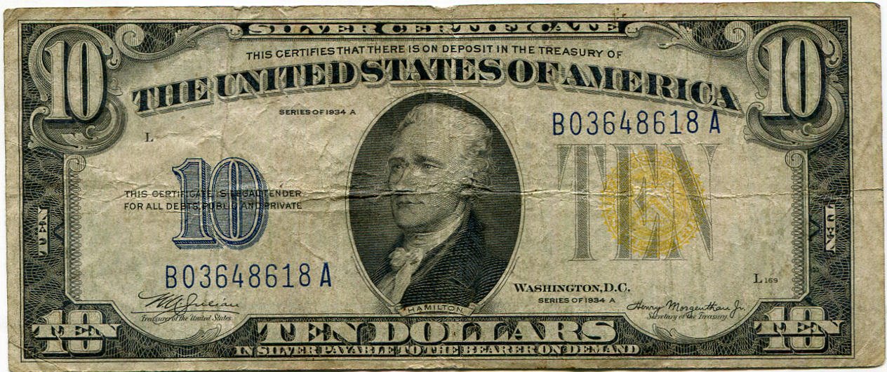 10 dollari tipo 1934 A bollino giallo