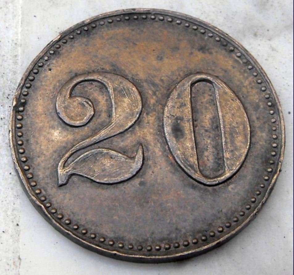 noto una certa somiglianza tra questi gettoni non solo nel carattere del 20 ma anche in quello del nome al rovescio