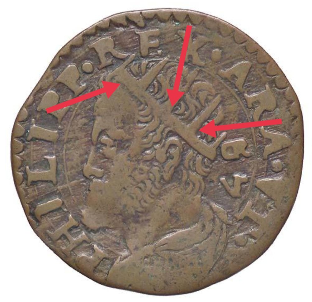 Non potrebbe essere diversamente,sotto Filippo II il volto è sempre barbuto mentre nell'esemplare oggetto della discussione è evidente che non è un un profilo con barba...
