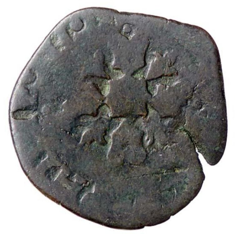 e da molto che posseggo questa monetina in rame che reputo coniata a Napoli sotto il regno di Filippo IV di Spagna, cercando di dargli la corretta classificazione mi sono imbattuto in diversi dubbi,l'unica moneta che più gli somiglia è il 3 cavalli del 1636 con sigla GA/C,classificato al numero 133,pagina 245 del Magliocca con la seguente nota: