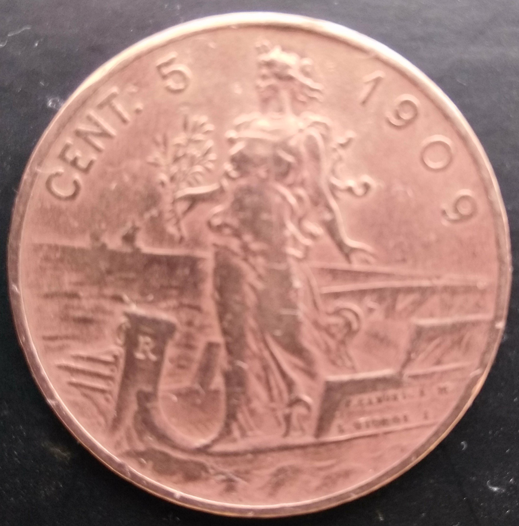 Moneta catalogata NC, quella in foto dovrebbe essere  un BB, moneta autentica ( ci sono dei falsi? forse per il 1908)