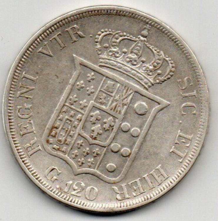 2- Tale anomalia deve essere considerata una vera e propria Variante, innanzitutto perchè trattasi si un errore araldico notevole. Gli Stemmi nobiliari capovolti sono definiti "diffamati" e pertanto è doveroso ascrivere le Aquile Capovolte come correlate a precisi eventi storici ed a una sorta di reprimenda nei confronti della Sicilia ( Stemma Aragona- Sicilia ) da parte del Regnante ( dapprima Ferdinando IV poi Ferdinando II° ), Venendo nel particolare, al momento attuale si conoscono le "Aquile Capovolte" negli anni 1834-56-57-58-59 ed ultimo 1859 di Francesco II°. Tutti anni caratterizzati da moti ed insurrezioni fomentate dalla Sicilia. Per adesso non mi addentro in particolari storici. Posto semplicemente una tabella nella quale sono prese in considerazione le Rarità di queste monete, sottolineando ancora che tale Variante è considerata come tale solo negli ultimi anni.