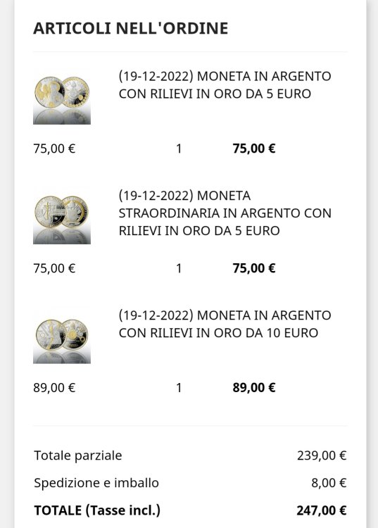 Buongiorno a tutti, questa mattina ho ricevuto il link di epay del Vaticano per il pagamento della moneta "(26-10-2021) MONETA 10 EURO STRAOR AG (FS) 2021 Centenario della Fondazione Università Cattolica del Sacro Cuore" anche se non ne avevo fatto richiesta. La stanno proponendo anche a voi, o avete ricevuto la stessa email?