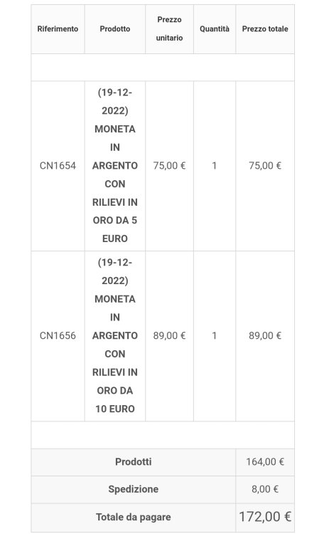 Il problema che con il modulo se non volevi qualcosa lo cancellavi e eri a posto con la email devi aggiungere in calce alla risposta ciò che non vuoi e a volte poi sbagliano. A me è successo così con la moneta in rame che non volevo ma loro mi hanno mandato il link per epay con essa compresa.