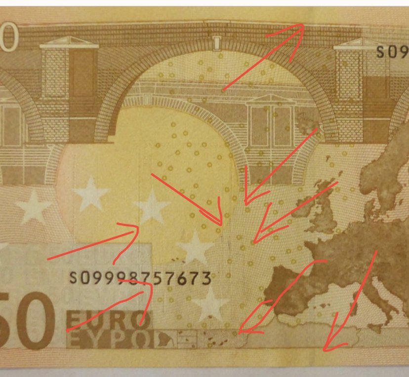 Però se quelle sono pieghe perchè si vedono solo guardando il posteriore della banconota e non l'anteriore ?