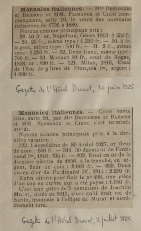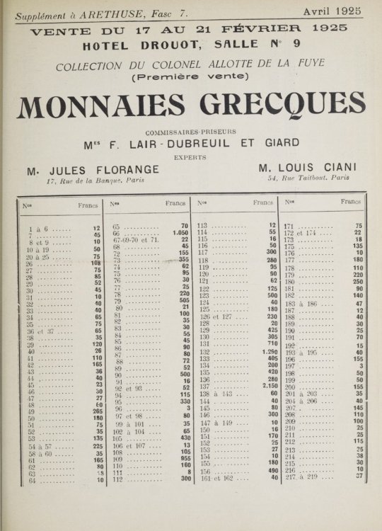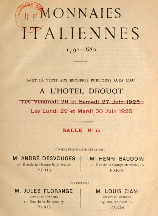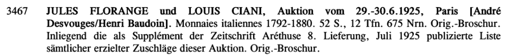 se dovessi citare in un lavoro  la referenza del catalogo Florange Ciani del 1925 preferisco rifarmi a quanto riportato nella descrizione drl Curatolo salvo che nuovi documenti riguardanti la vendita francese saltino fuori