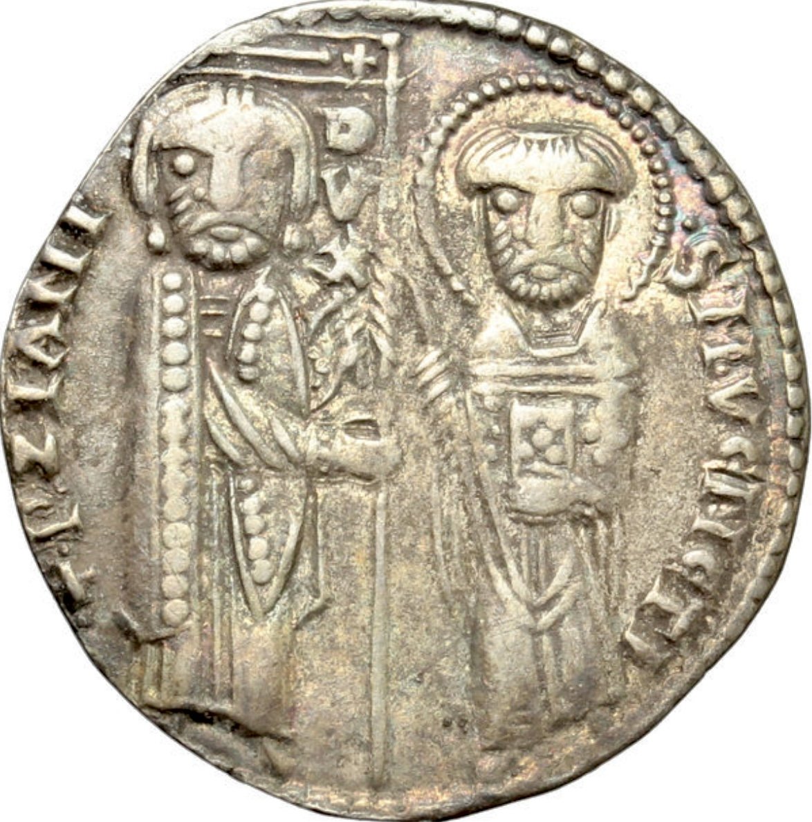 Lo scudetto terminante a punta mi sembra effettivamente tale e non dovuto a salti di conio che pur ci sono, ma cosa contiene? Inizia la caccia in tutti i Grossi a nome del Doge Ziani ....