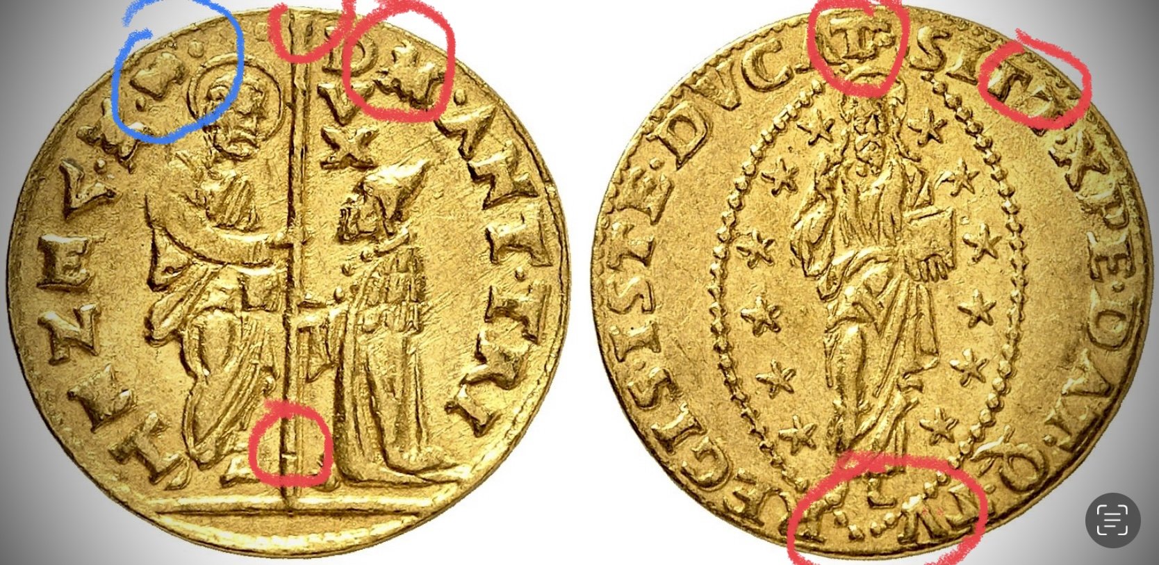 Bella moneta in ottimo stato di conservazione. Il Trevisan non è così facile da trovare, direi raro. I segnetti cerchiato sono secondo me piccoli difetti di conio, forse fatti pulendo il conio. Saluti.