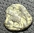 Mi sembra che la moneta abbia anche una perdita di sostanza che potrebbe in parte spiegare la mancanza delle legende e il diametro da AE4.