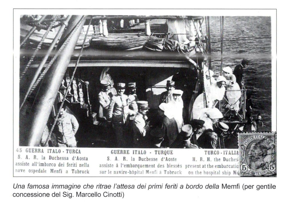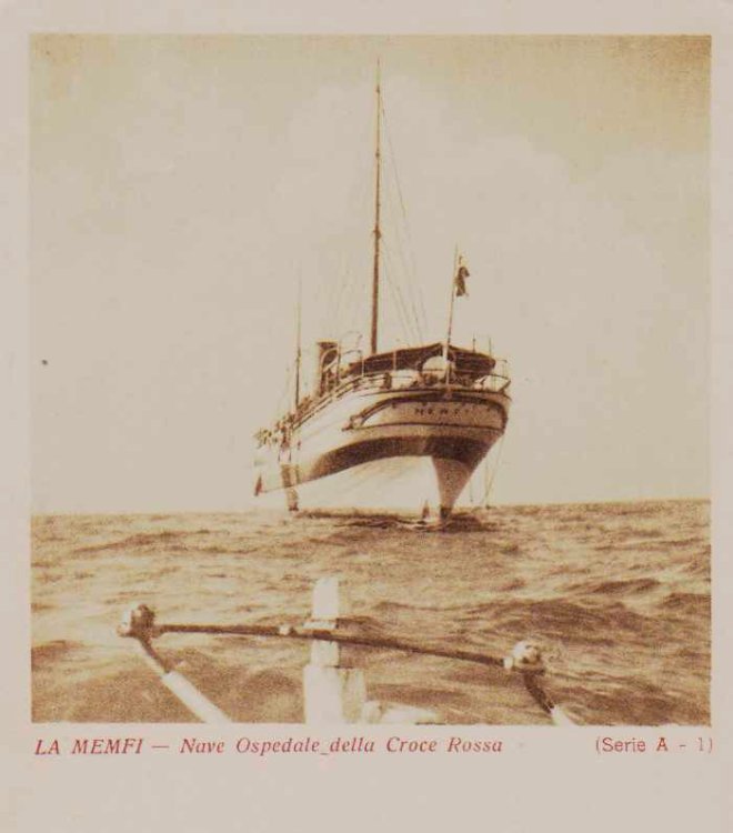 apollonia Inviato 29 Giugno, 2022 Supporter Autore #102 Inviato 29 Giugno, 2022 A proposito di navi ospedale... La nave ospedale impegnata nelle operazioni della Croce Rossa nella guerra di Libia è la Memfi, nome che compare in copertina e nel testo del libro di Galazzetti e Lombardi con le illustrazioni qui riportate (post # 69). Non si hanno dubbi sul nome scritto sullo scafo della nave, come si vede in questa illustrazione. Non capisco perché il nome riportato sul chiudilettera commemorativo della missione sia Menfi. Se qualcuno è a conoscenza del motivo, gli sarei grato se me lo spiegasse. apollonia