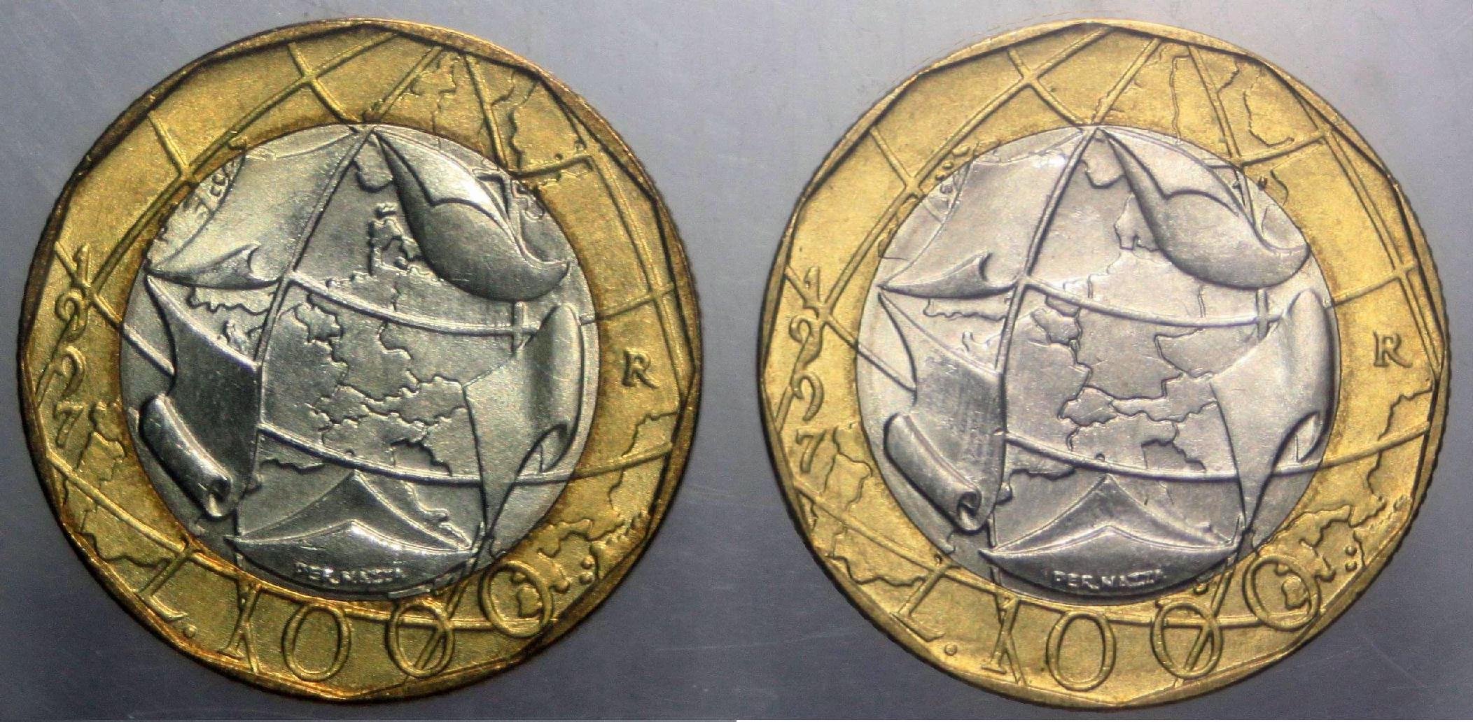 Oppure, per rimanere su monete molto più comuni, ha un senso notare le differenze sulle 1.000 Lire "bimetalliche":