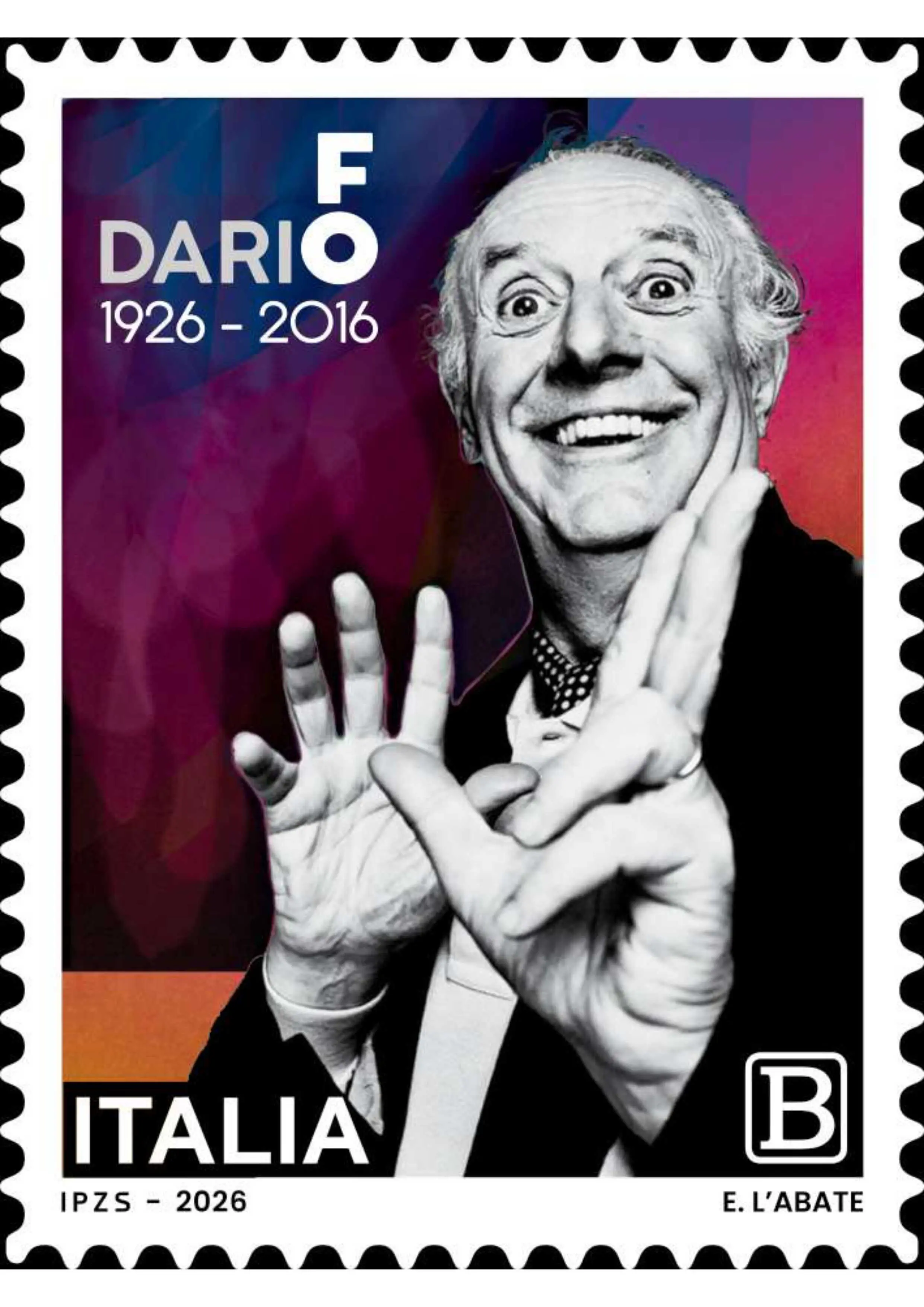 marco1972 Inviato 23 Marzo #705 Inviato 23 Marzo Il Ministero delle Imprese e del Made in Italy, il giorno 24 marzo 2026, emette un francobollo ordinario appartenente alla serie tematica le Eccellenze del patrimonio culturale italiano, dedicato a Dario Luigi Angelo Fo nel centenario della nascita. Tiratura: duecentomila-venticinque carte-valori postali. Indicazione tariffaria: B. Descrizione del francobollo La vignetta riproduce un primo piano del maestro Dario Fo, attore, autore e regista teatrale italiano. Figura straordinaria che ha messo il suo talento mimico e la sua brillante intelligenza scenica al servizio di un profondo rinnovamento del teatro comico nel nostro Paese. Completano il francobollo la legenda “DARIO FO” e le date “1926 – 2016”, la scritta “ITALIA” e l’indicazione tariffaria “B”. Bozzetto: Emanuela L’Abate. I francobolli sono stampati dall’Istituto Poligrafico e Zecca dello Stato S.p.A., in rotocalcografia; colori: cinque; carta: bianca, patinata neutra, autoadesiva, con imbiancante ottico; grammatura: 90 g/mq; supporto: carta bianca, Kraft mono-siliconata da 80 g/mq.; adesivo: tipo acrilico ad acqua, distribuito in quantità di 20 g/mq (secco); formato carta: 30 x 40 mm.; formato stampa: 26 x 36 mm.; formato tracciatura: 37 x 46 mm.; dentellatura: 11 effettuata con fustellatura. I fogli contengono quarantacinque esemplari più, sulla cimosa, la riproduzione monocromatica del logo MIMIT 1
