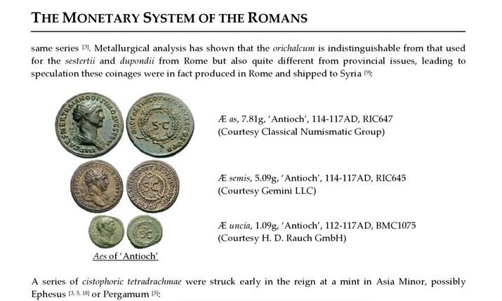 questo sulle emissioni in oricalco, il successivo su Asse, Semisse e Uncia (= quadrans) in area antiochena, tutte con pesi ponderali inferiori a quelli emessi a Roma: