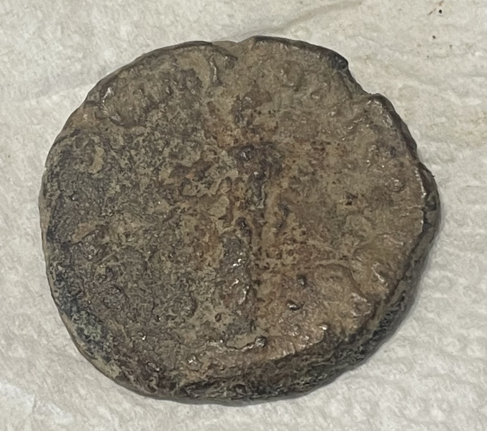 Considerando il peso è il diametro è sicuramente un asse dell'impero romano,al rovescio intuisco una figura in piedi volta a sinistra,sembra che tenga una cornucopia con il braccio sinistro,ai lati delle gambe si vedono la S a sinistra e la C a destra...