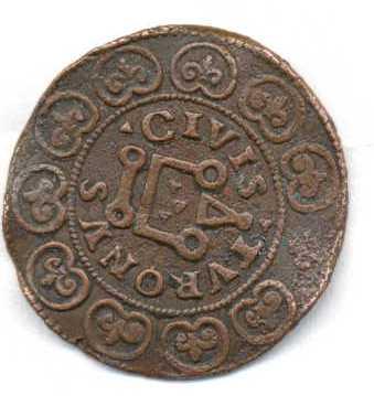 Si tratta di una tessera gettone francese vedasi discussione "tessera con emblemi della passione" che non posso linkare causa poco utilizzo del forum. All'interno della discussione si rimanda ad alcune pagine del libro in francese Gettoni e medaglie del Medio Evo.