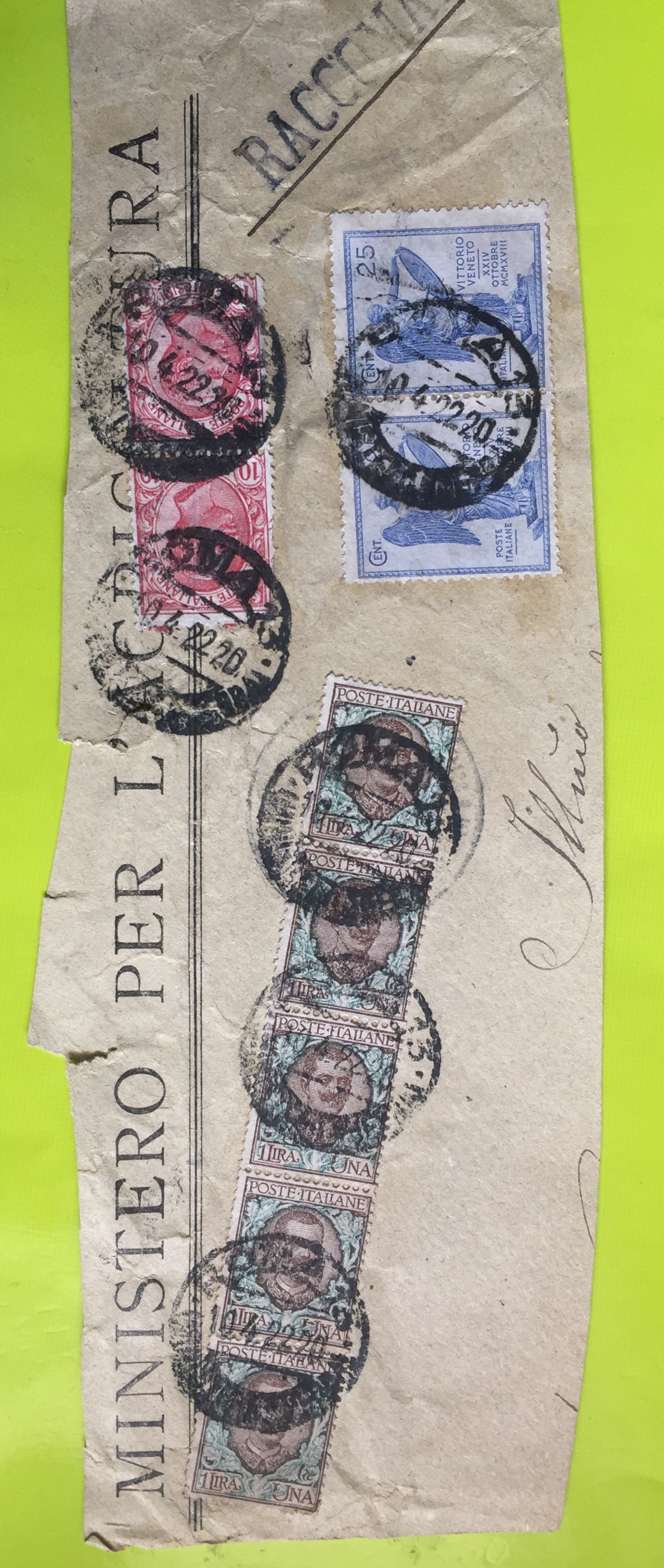PostOffice Inviato 6 Giugno, 2023 Autore #176 Inviato 6 Giugno, 2023 (modificato) Lettera per l'interno da Ripe (Ancona) per Senigallia, con nitido annullo di partenza da Ripe del 13.4.1919, annullo di arrivo non presente. Affrancata correttamente come lettera per linterno con 25c. 20c. arancio Michetti del 1916 + 5c. Leoni (valore di catalogo idem post precedente). Su questa affrancatura bisogna dire due cose,... (Primo), la freccia in blu che indica una decentratura tale del Michetti, da mostrare parte del francobollo accanto a sx, cosa che è sicuramente una varietà che da PREGIO alla busta, infatti viene segnalata o dal venditore o dal precedente possessore. (Secondo), su questa busta potrebbe essere stata perpetrata una frode postale. Infatti vediamo il 5c. Leoni che copre sul lato parte del Michetti. Quando si vedono affrancature di questo tipo è possibile che i francobolli siano stati posti volontariamente in quel modo, per coprire un leggero segno di annullamento sul lato dx del Michetti. Altra cosa che mi fa pensare ad una frode postale e al riuso del Michetti è quel piccolo segno di annullamento che ho cerchiato, che non è stato fatto dagli annulli di partenza di Ripe, e che è passato inosservato dal funzionario postale di Ripe che infatti ha annullato l'affrancatura e quindi di conseguenza accettato la stessa. Non vi sono comunque segni di tassazione sulla busta, e non vi è neanche l'annullo di arrivo a Senigallia, cosa che mi fa pensare... che il funzionario postale di Senigallia non abbia timbrato in arrivo di proposito la busta accorgendosi della frode..?? Non lo sapremo mai. Forse non voleva far pagare la tassazione al Reverendissimo Don Antonio Ansuini, parroco sicuramente ben conosciuto della parrocchia di Sportone o Portone in quel di Senigallia che esiste ancora. Dalla lista cronologica dei parroci della parrocchia del Portone di Senigallia:, tutto torna storicamente. Anche l'ipotesi della frode postale da PREGIO alla busta. È questa è un'altra .. storia postale che spero sia piaciuta. Modificato 6 Giugno, 2023 da PostOffice 1