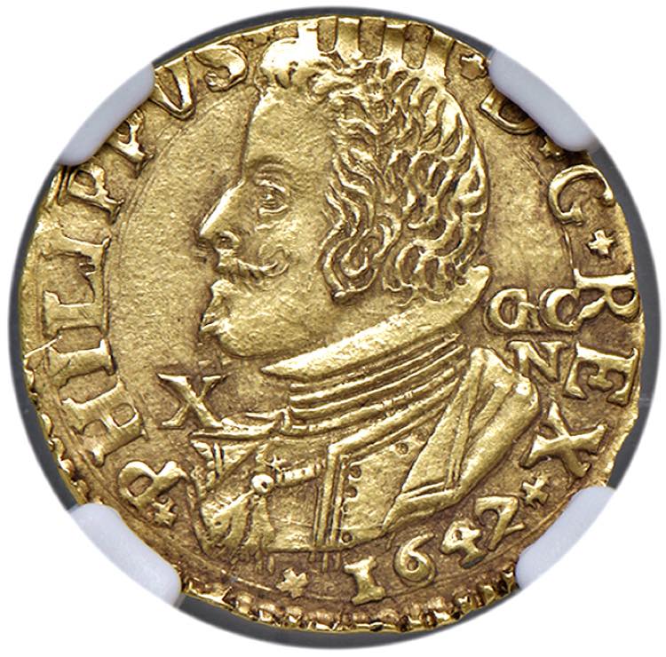 From a note on the MIR catalogue "P/R does not list this date as it states they are examples dated 1647, but clearly the date is 1642". Top Pop, finest example graded at NGC, in slab n. 5783258-014.