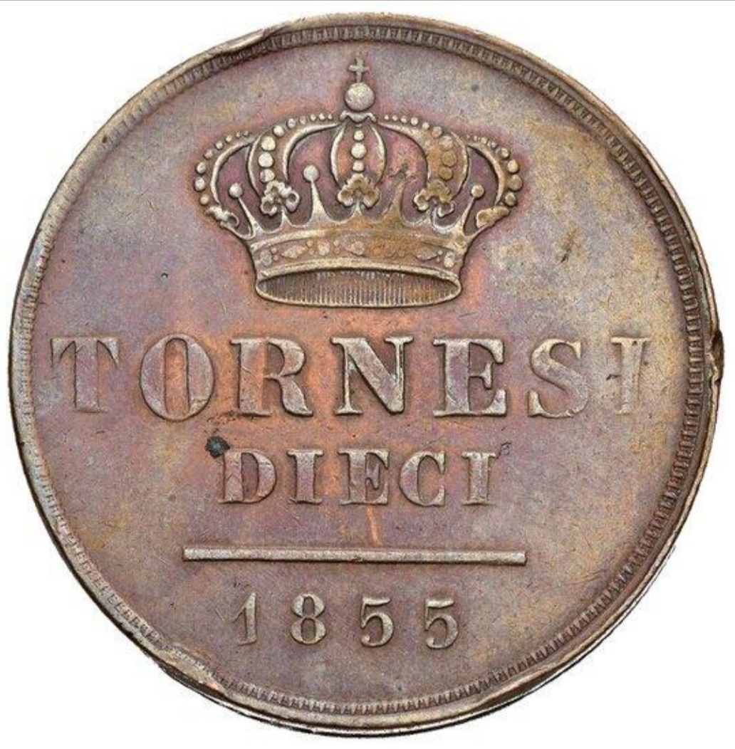 Aggiungo un altro 10 tornesi 1855 passato in asta Ferrarese  23 lotto 369, sembra essere dello stesso conio del l'esemplare postato da @gennydbmoney
