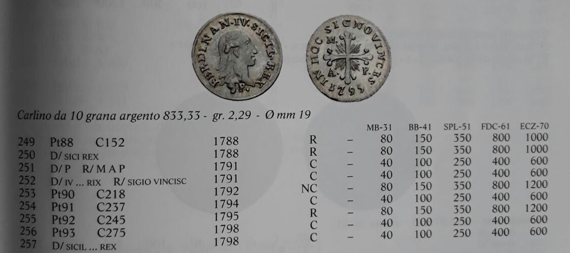 Stessa sorte penso tocchi anche al 10 Tornesi 1798, SICILIAR.. conosciuto gia' dal De Sopo nel suo studio sulle varianti nelle monete napoletane.