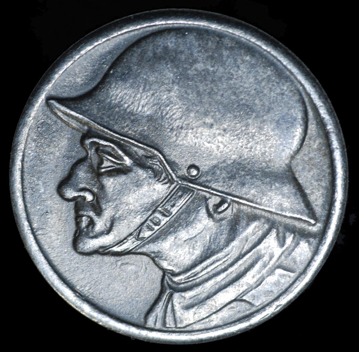 Moneta forse più interessante di tante altre, con questo bel primo piano del militare, iconografia utilizzata forse anche perché la città di Düren si trovava non troppo lontano dal fronte occidentale (quello dove non c'era nulla di nuovo), dove la guerra ha lasciato più segni. Un contesto che, volendo, aggiunge al pezzo un certo fascino malinconico.