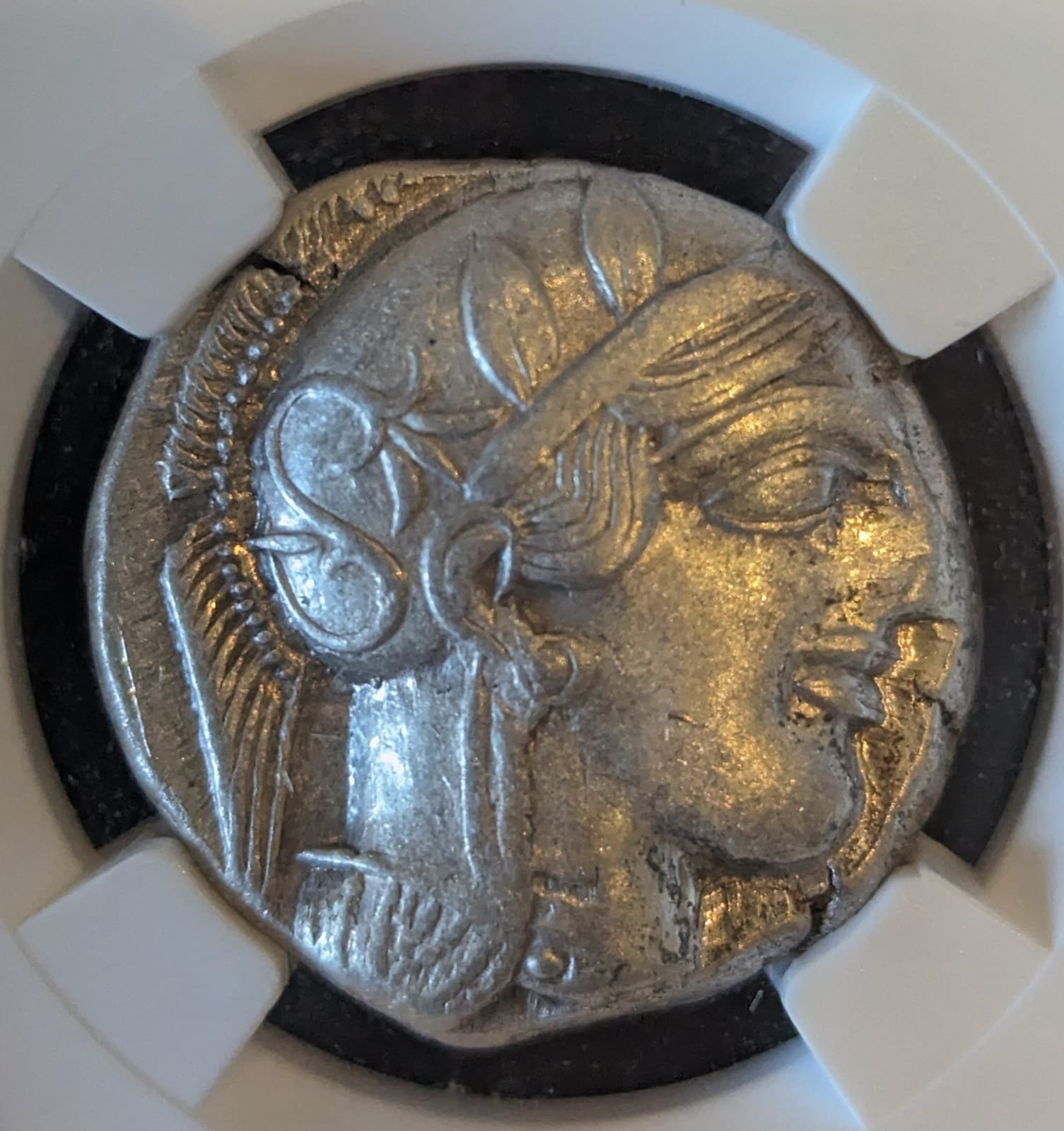 Buonasera, vorrei sapere se, a parere di qualcuno esperto in monete greche antiche, questo tetradramma di Atene è reale o meno (è certificato Ngc quindi spero che chi l'ha classificata sia stato competete...ve lo chiedo anche perché so che Ngc non rilascia certificati di autenticità)