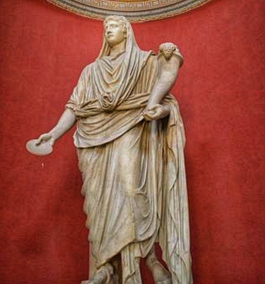 Statua del Genio Augusto presso I Musei Vaticani a Roma ed un affresco raffigurante i Genii.