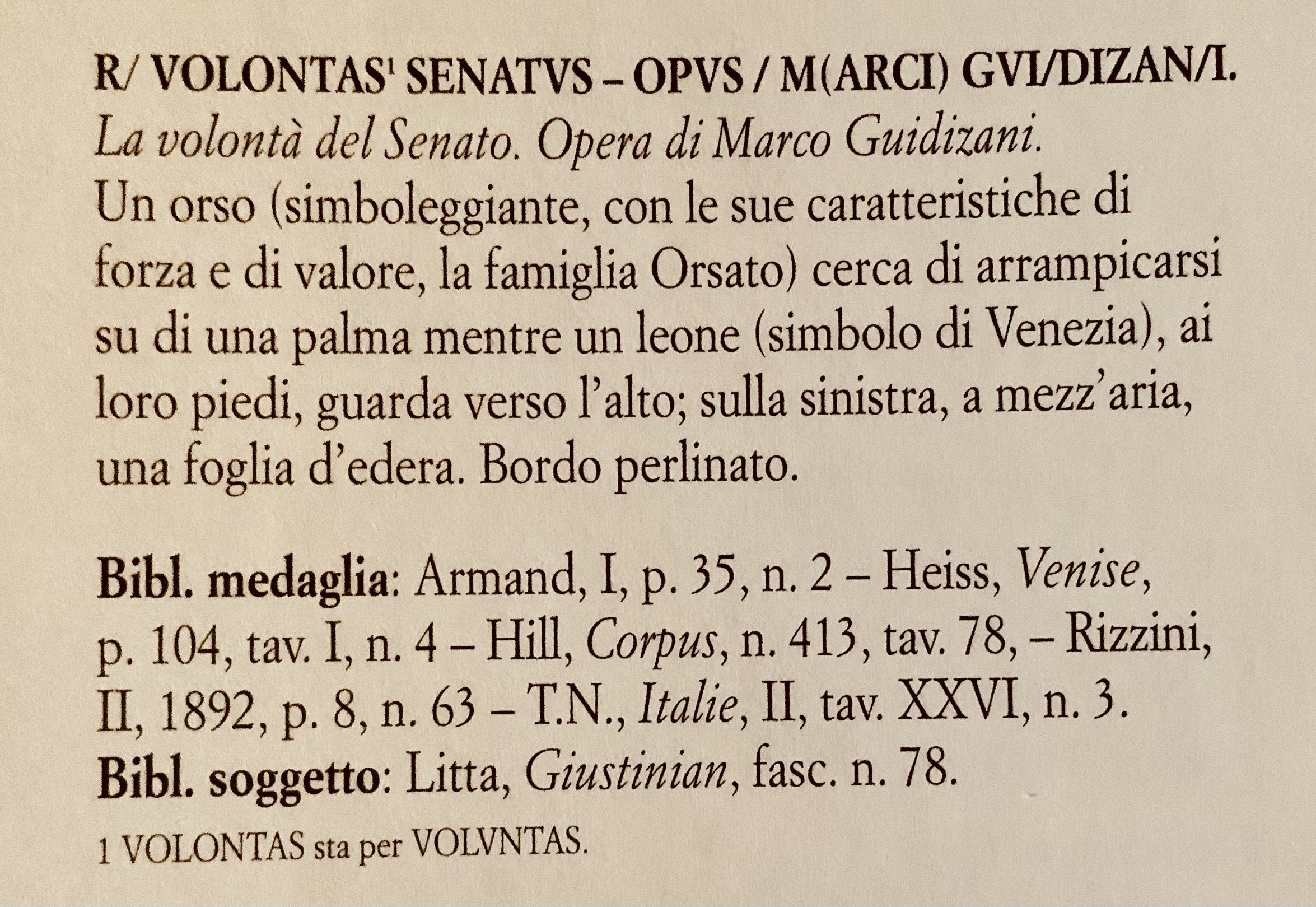 • Oppiano ha rinominato il titolo in Giustiniani, Orsato