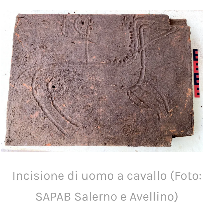 L' ingiuria più evidente risulta però quella in  al centro del lato inferiore, da cui si origina una crepa che seziona l' embrice lungo il suo asse centrale verticale