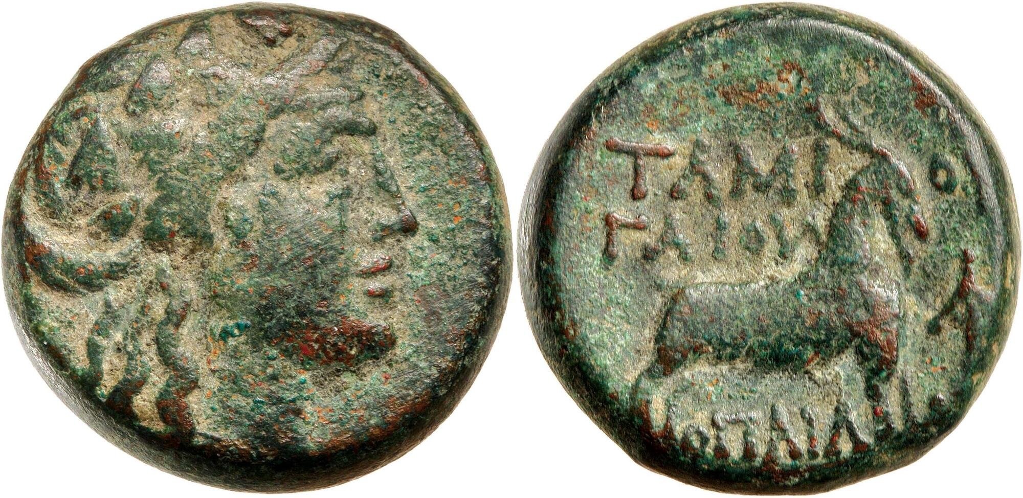 Rev: TAMIOΥ / ΓAIOΥ. He-goat standing right; three monograms around.
