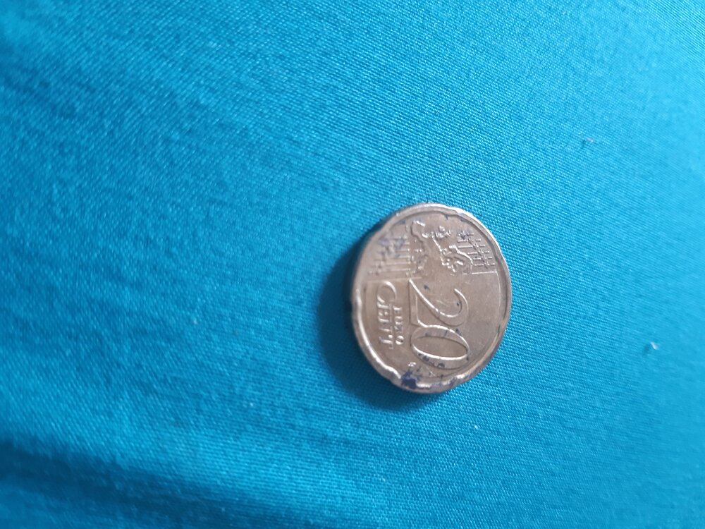 Credo che questa moneta da 20 centesimi abbia un errore di conio, intanto è visibilmente smerigliata, tanto che la data è stata completamente cancellata, si nota anche che la facciata posteriore è leggermente storta rispetto alla antertiore (quella con scritto 20)