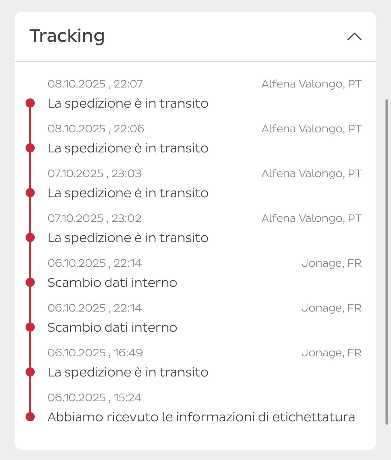 anche a me ultimo aggiornamento 2 giorni fa, pacco ancora in Portogallo