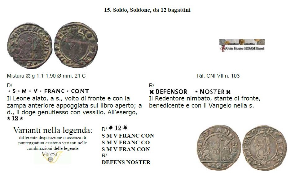 mi pare proprio una stranezza che queste monete fossero state coniate da un doge che precede il Priuli di tre dogadi...del Priuli ne sono state coniate una quantità esorbitante dato che era una moneta nuova e invece qui troviamo solo pochi pezzi qua e la.