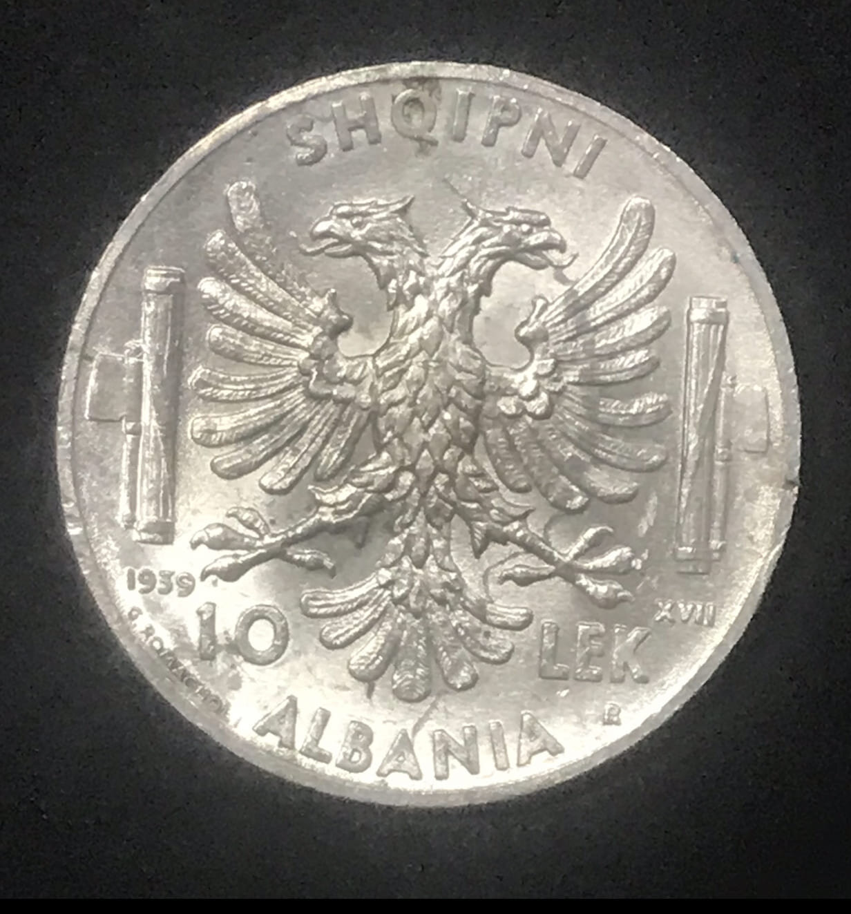 10 Lek anno 1939, peso 10 gr. tondi tondi, diametro 27,00 mm.