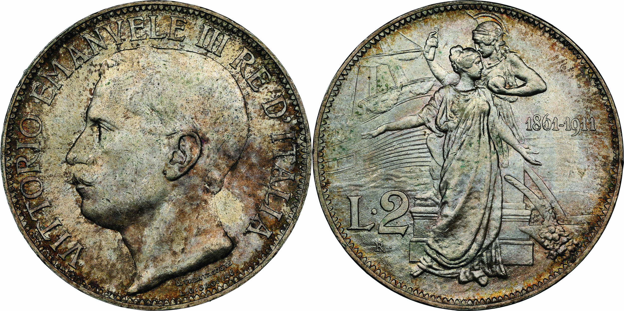 • Oppiano ha rinominato il titolo in Vittorio Emanuele III - 2 Lire Cinquantenario, Roma, 1911