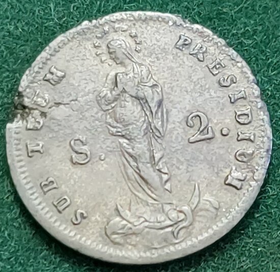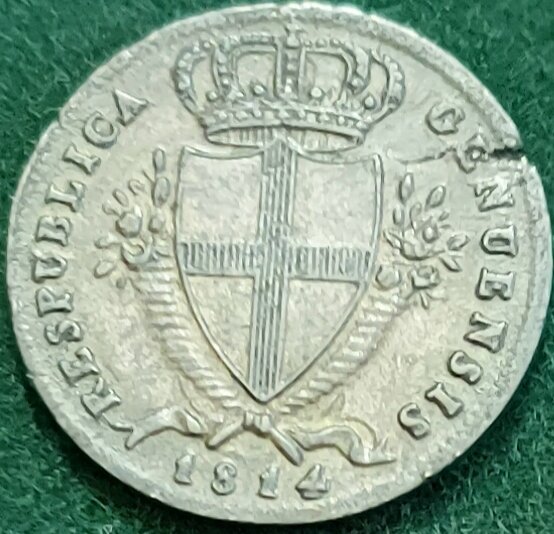 Forse una frattura di conio. La moneta non è messa male a parte quella frattura, rilievi alti....le foto non mi fanno vedere bene tutti i particolari. Sono coniate in mistura molto bassa d'argento ma si dovrebbe vedere, almeno in alcune si vede, un bel lustro splendente in questa non mi sembra. Sapere peso e diametro aiuta a valutarla. Per me un bel BB / BB+  almeno con queste foto per la conservazione ma attenzione che la frattura incide molto sul valore anche se fosse stata in alta conservazione.🙏🏼