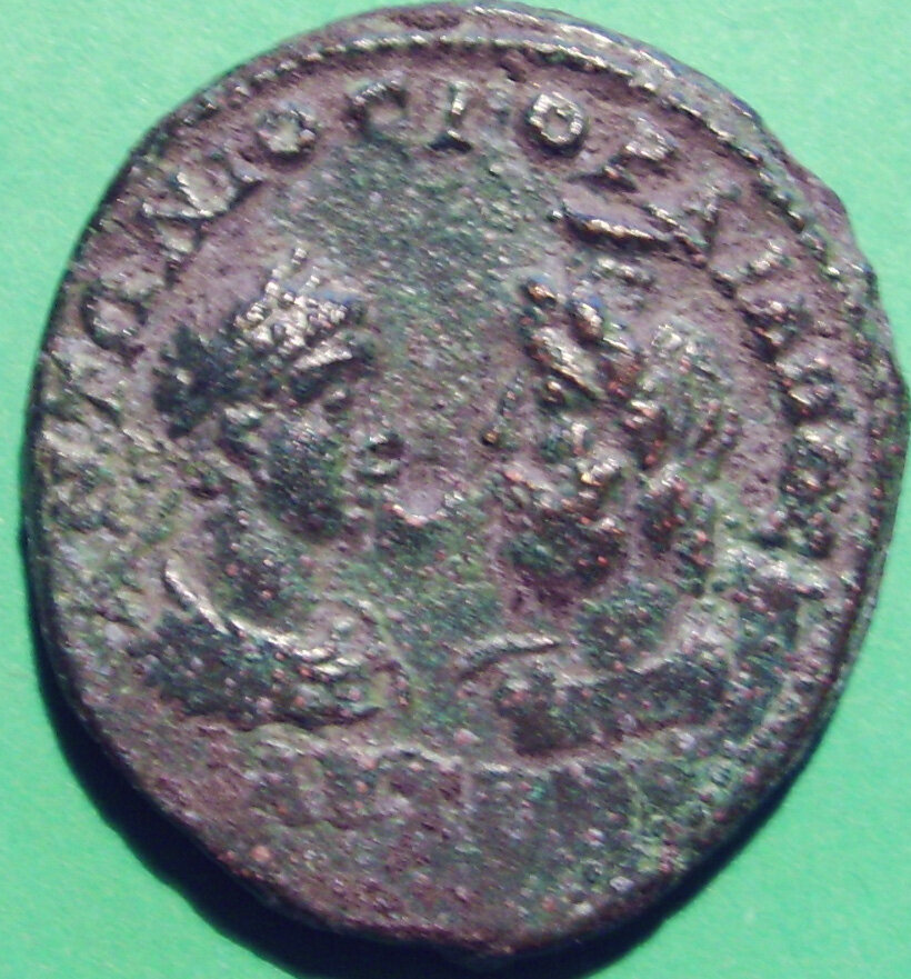 La doppia immagine al diritto è una caratteristica di certe zecche della Mesia Inferiore e della Tracia, in particolare Odessus, Nicopolis ad Istrum, Marcianopoli, Anchialo ed altre. La prima testa è quella dell'imperatore regnante, la seconda quella di un familiare (figlio, moglie, madre...) o di una divinità, quasi sempre Serapide.