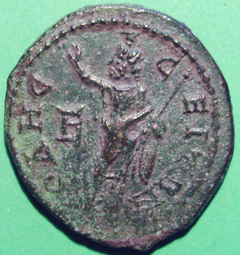 Per ovviare a questa assenza, vi mostro una moneta che forse ho già postato molti anni fa. Si tratta di un pentassarion ( E nel campo sinistro del rovescio) di Gordiano III: al D c'è il suo busto, affrontato a quello di Serapide. Al R, lo stesso Serapide in piedi a sinistra, con mano destra alzata, e la scritta ΟΔΕCCΕΙΤΩΝ. Patina molto bella. Non vi so dire il peso, perchè la moneta non è più in mio possesso, e non l'avevo annotato.