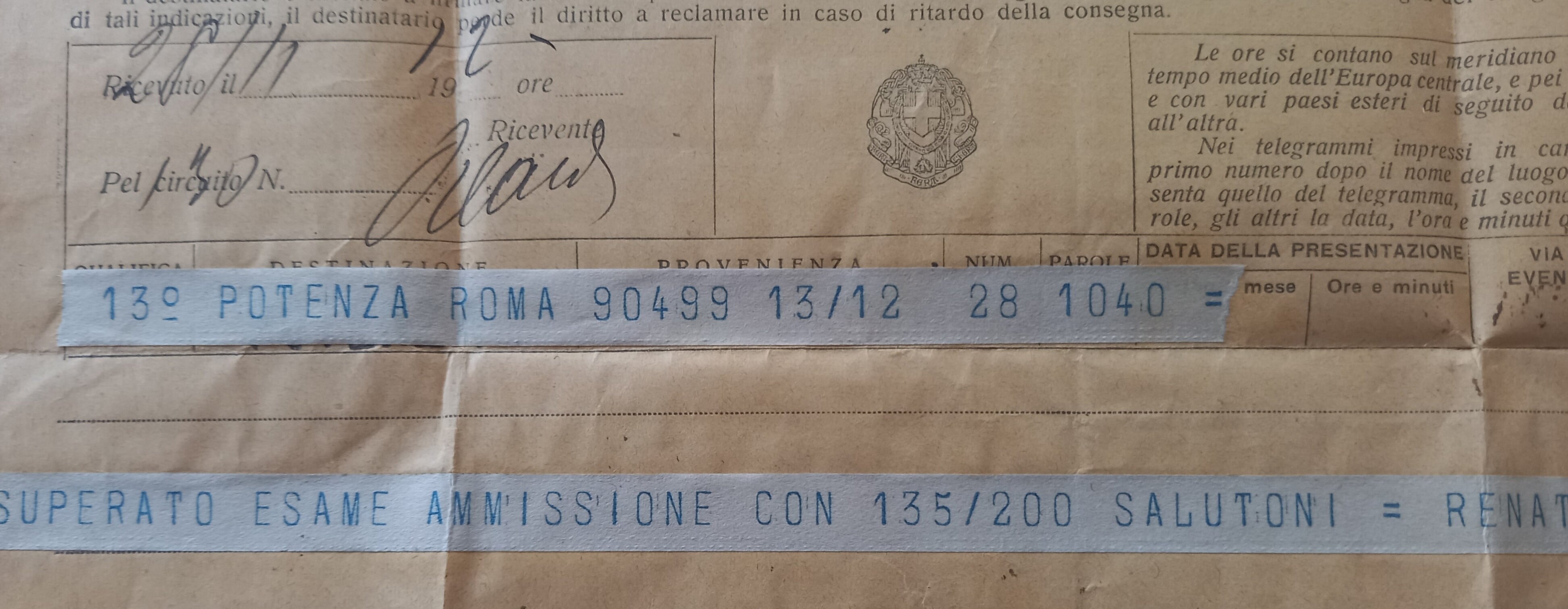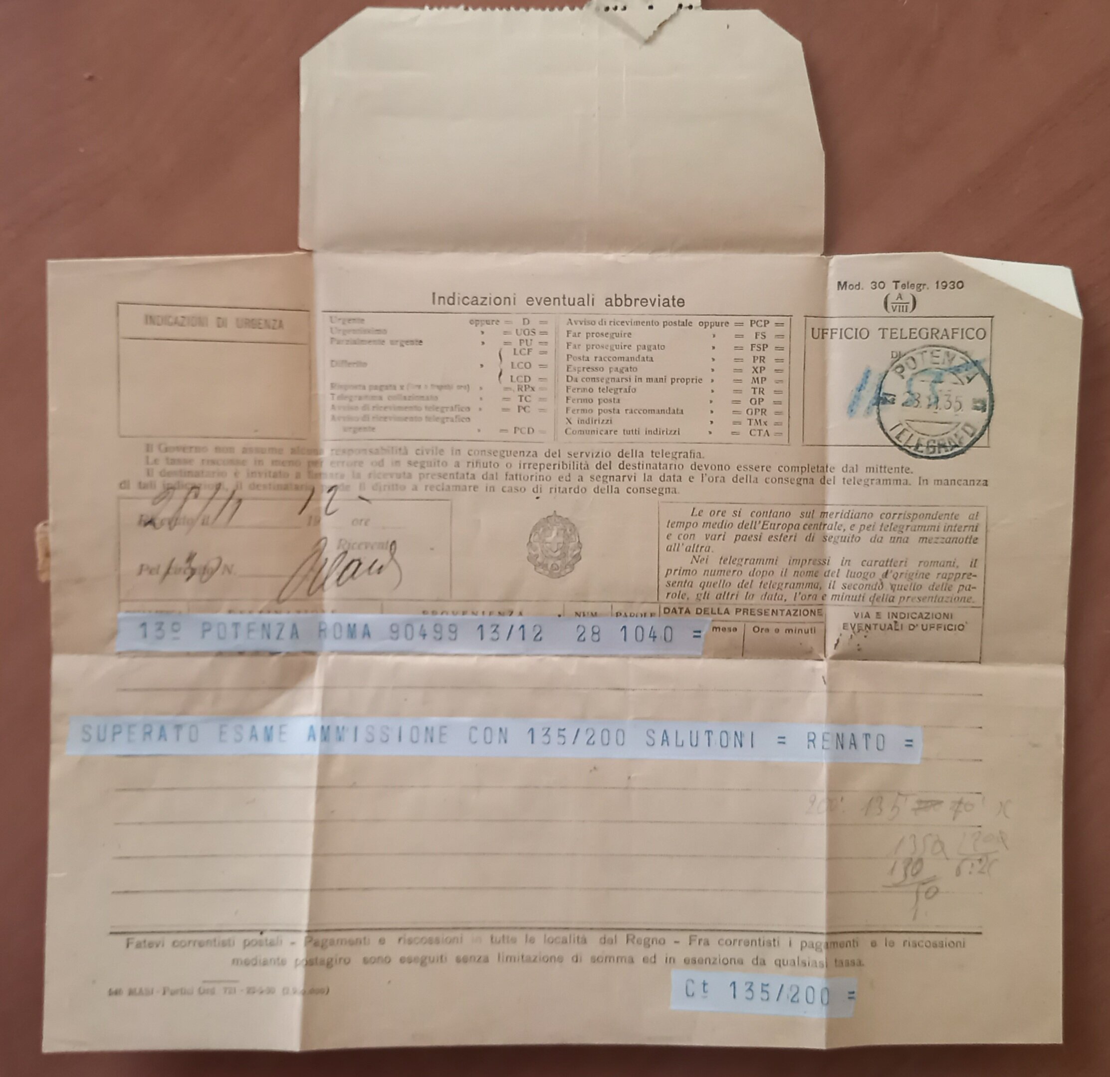 dareios it Inviato 2 ore fa Supporter #1 Inviato 2 ore fa Con l'avvento della TV negli anni 60 e conseguenti trasmissioni con quiz a premi, l'uso del telefono divenne sempre più diffuso. Prima della seconda grande guerra, il telefono era un lusso e per poter comunicare velocemente si utilizzavano i cosiddetti "telegramma". A differenza delle normali lettere che si ricevevano sempre con gioia, quando arrivava un telegramma, c'era sempre il timore che recasse notizie funeste. Nel caso di questo telegramma che vi mostro, le notizie erano buone. Spero di ricevere ulteriori approfondimenti e notizie riguardanti proprio questi telegrammi. Grazie per l'attenzione.