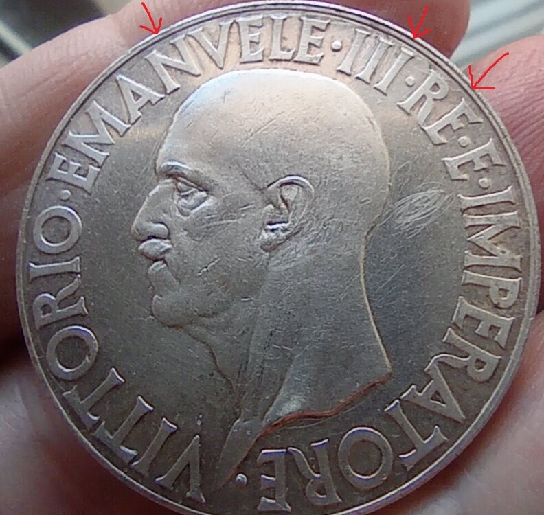 Buongiorno, chiedo aiuto e pareri sulla originalità di alcune monete di Vittorio Emanuele III°. Ho acquistato una piccola collezione senza oro e ho il dubbio che alcune monete siano i cosiddetti tappabuchi. Questa che posto è la terza, mi hanno consigliato di metterle in questa sezione del sito, le altre due le avevo postate nel link dei riconoscimenti e identificazioni: