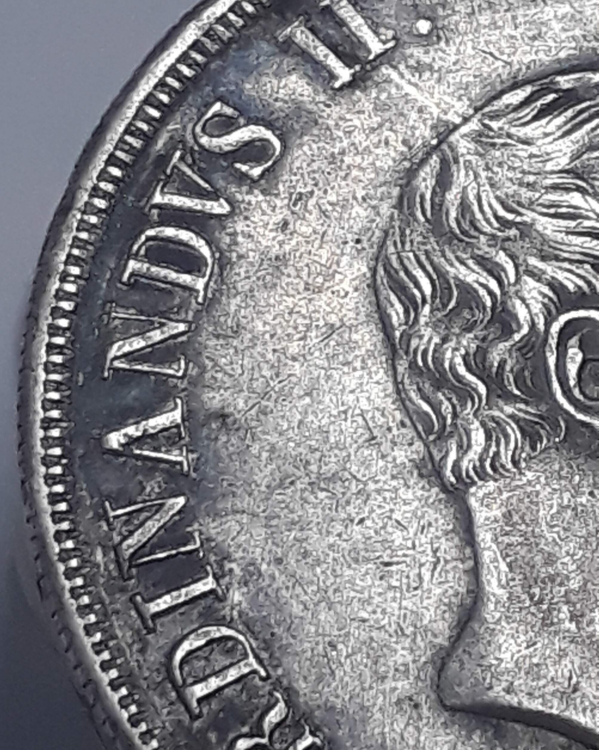 Oggi ho dato un occhiata ad alcune piastre ferme da mezzo secolo ed ho trovato alcune curiosità che non mancano MAI in questa monetazione. Inizio col proporvi una 1853 col ? è una V capovolta o una A senza asticina ?!?! Non la trovo censita in nessun catalogo.