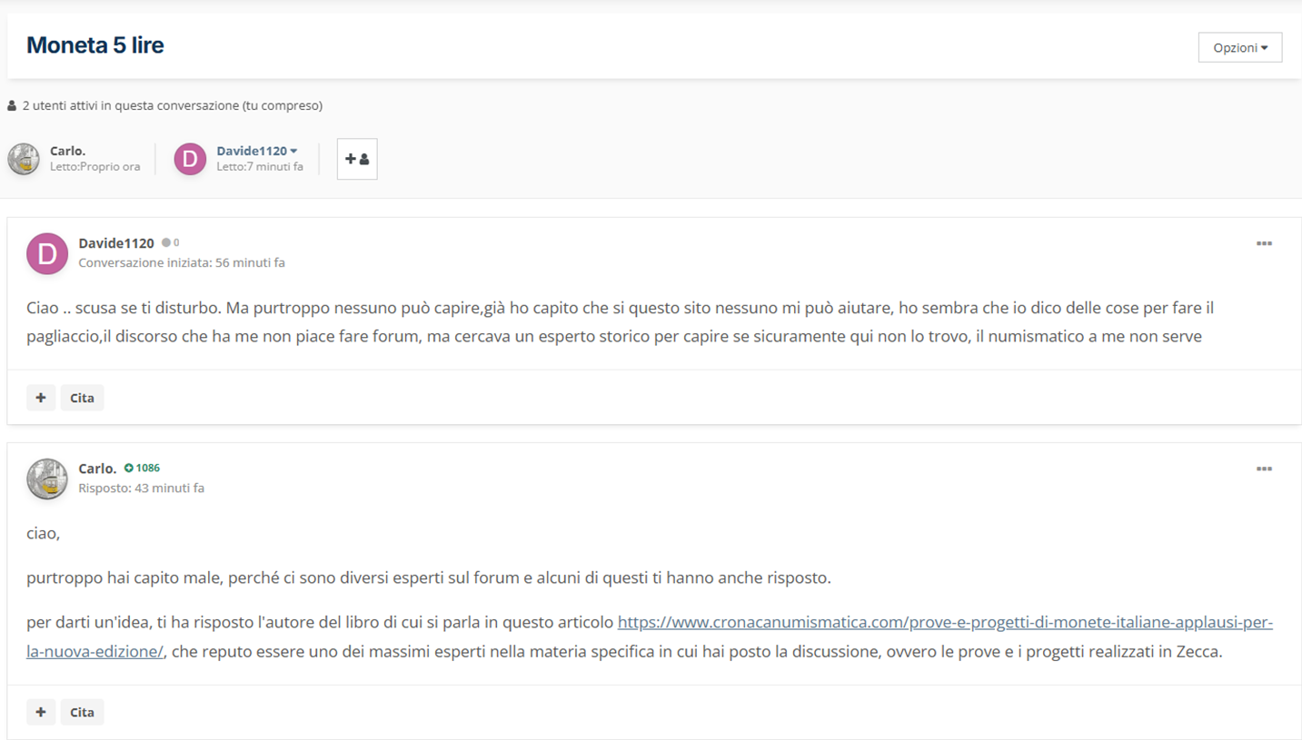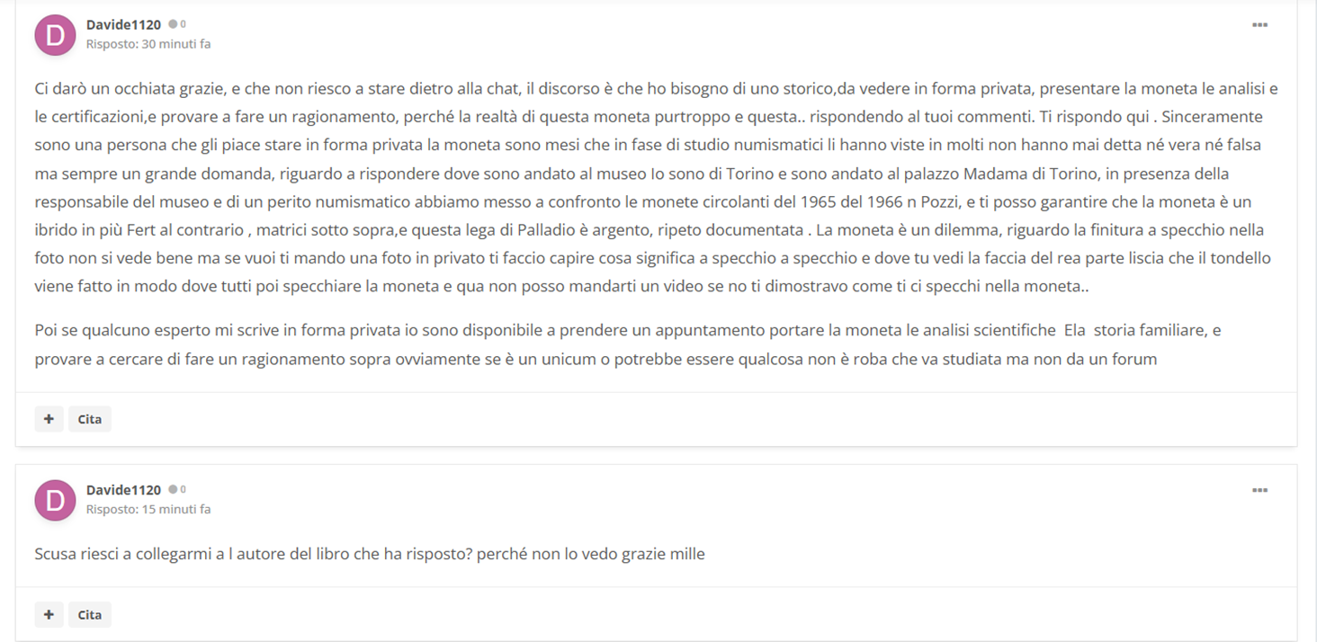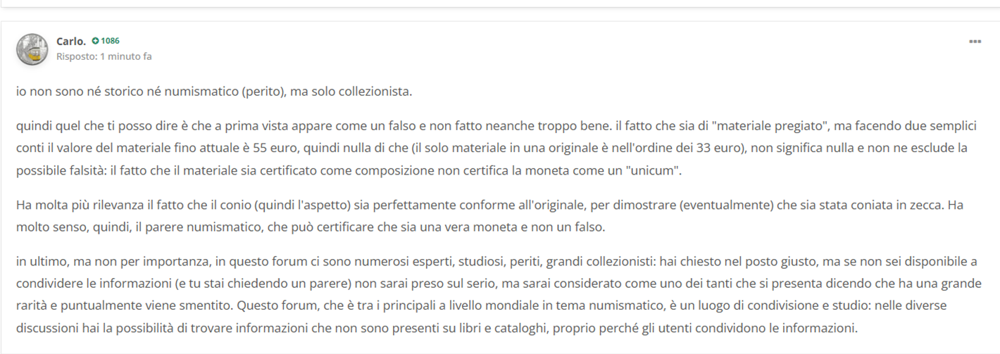 5. un perito numismatico esperto ha mai visto di persona la moneta? nel caso, quale è stato il riscontro?