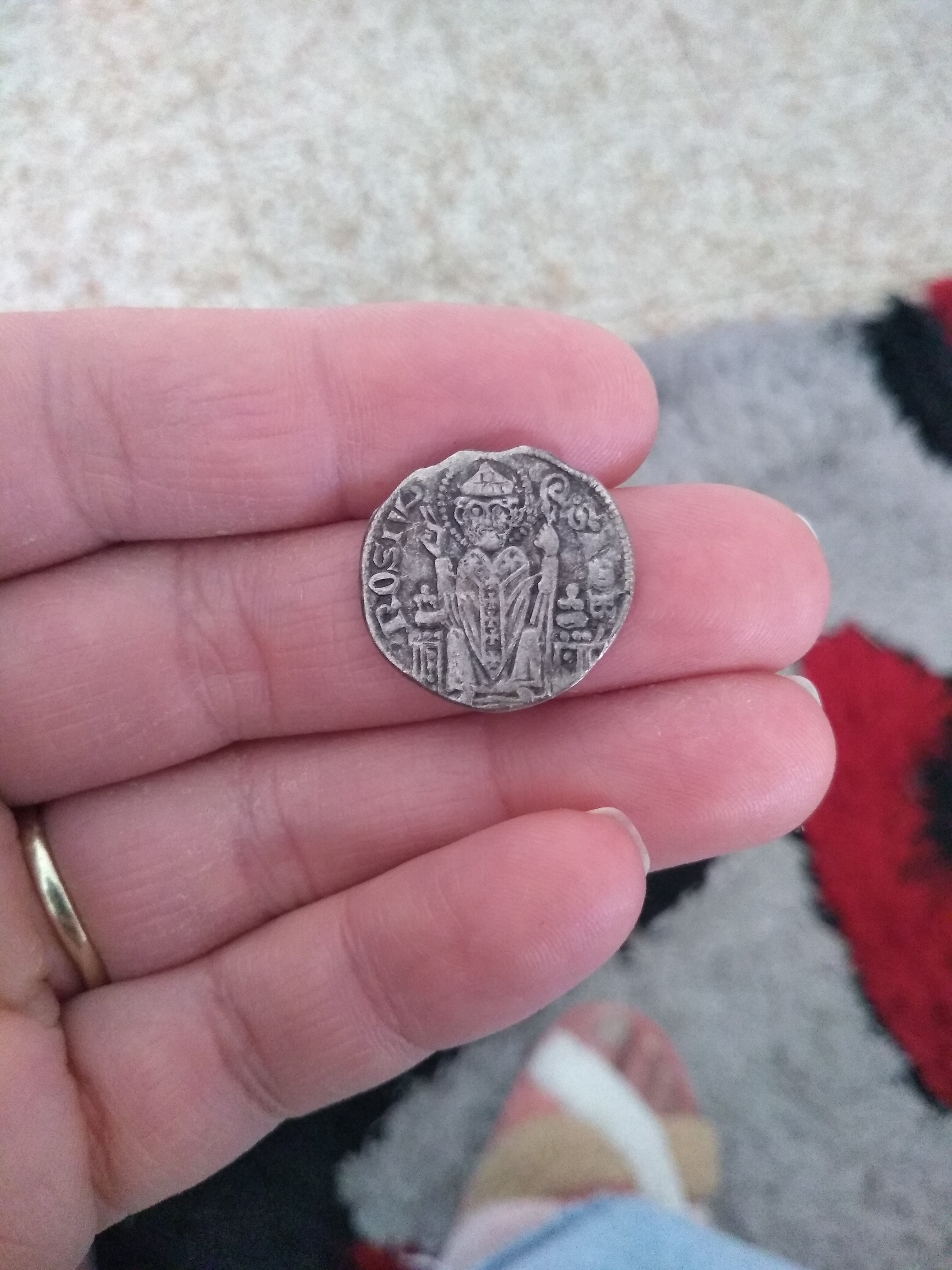 Riproduzione di una moneta milanese (mediolanum sul rovescio)