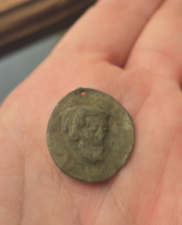 A mio parere potrebbe trattarsi di una medaglietta devozionale con San Giorgio martire, ovviamente è soltanto la mia opinione.