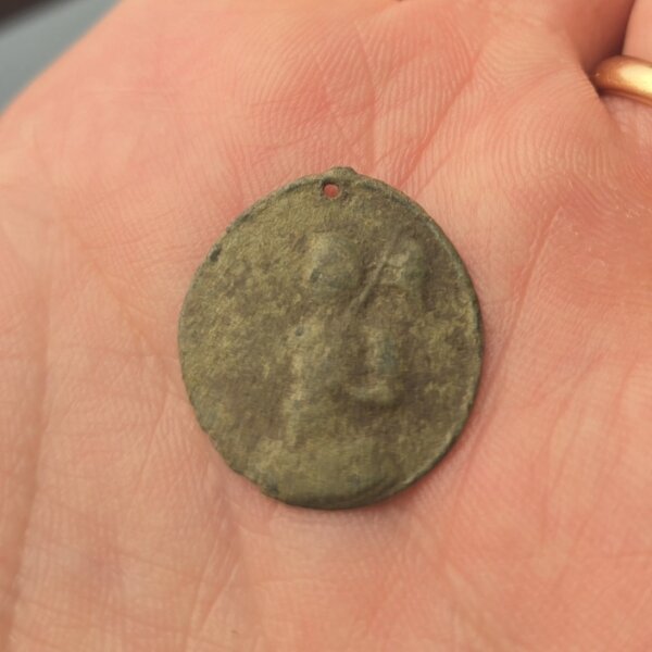 Buongiorno, qualcuno riesce ad identificare le figure su questa medaglietta votiva?