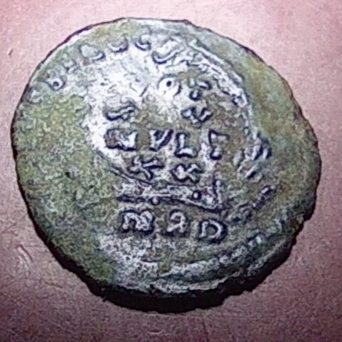 Dopo la guardo... Ma al volo mi pare coniata su una moneta precedente di IV secolo forse di un nob caes